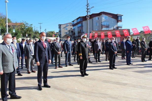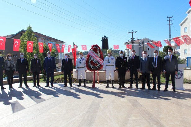 Anıta çelenk konulmasının ardından saygı duruşunda bulunuldu, İstiklal Marşı okundu.