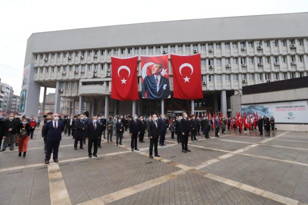 Türkiye Cumhuriyetinin ilk kenti olan Zonguldak’ta Mustafa Kemal Atatürk, 82. Ölüm yıl dönümünde düzenlenen törenle anıldı. Türkiye Cumhuriyeti’nin kurucusu Mustafa Kemal Atatürk, ölümünün 82’inci yıl dönümünde Zonguldak’ta törenle anıldı. Saat 09.05’te çalan sirenle birlikte cadde ve sokaklardaki vatandaşlarda saygı duruşuna geçti. Valilik önündeki Atatürk Anıtı’nda düzenlenen anma törenine Vali Mustafa Tutulmaz, Garnizon Komutanı Ayhan Kafalı, Belediye Başkanı Ömer Selim Alan, daire müdürleri, siyasi parti ve sivil toplum kuruluşlarının temsilcileri, gaziler ile öğrenciler katıldı. Atatürk Anıtı’na çelenklerin konulmasının ardından saatler 09.05’i gösterdiğinde sirenler eşliğinde 2 dakika saygı duruşunda bulunuldu. AFAD tarafından kente kurulan sistemden tüm mahallelerde siren çalındı. Siren sesini duyan, cadde ve sokaklarda yürüyenler saygı duruşuna geçti, İş yerlerinde çalışanlar ve araçlarında bulunanlar da dışarıya çıkarak saygı duruşuna katıldı. Tören, İstiklal Marşı’nın okunmasıyla sona erdi.