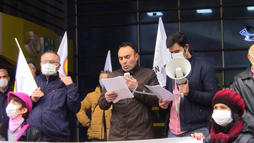 Açıklamayı, KESK Dönem Sözcüsü aynı zamanda Tüm Bel-Sen Şube Başkanı İsmail Sefertaş yaptı.