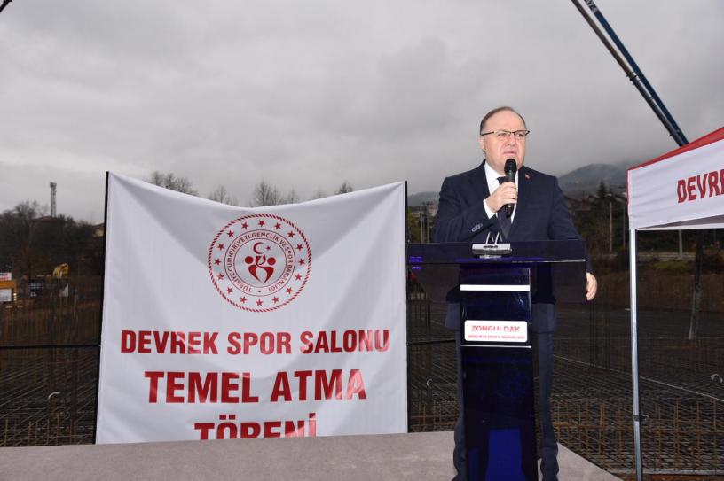 Zonguldak’ın Devrek ilçesi yeni spor salonuna kavuşuyor.500 kişilik Devrek Spor Salonunun temel atma töreni, Vali Mustafa Tutulmaz, milletvekilleri Polat Türkmen,Hamdi Uçar, Ahmet Çolakoğlu, ilçe Kaymakamı Ümit Altay ve protokol üyelerinin katılımıyla pandemi kuralları çerçevesinde yapıldı.Saygı duruşu ve İstiklal Marşımızın hep birlikte okunmasının ardından Gençlik ve Spor İl Müdürü Hakan Yüksel İl Müdürlüğünün yatırım projeleri konusunda bilgi sundu.