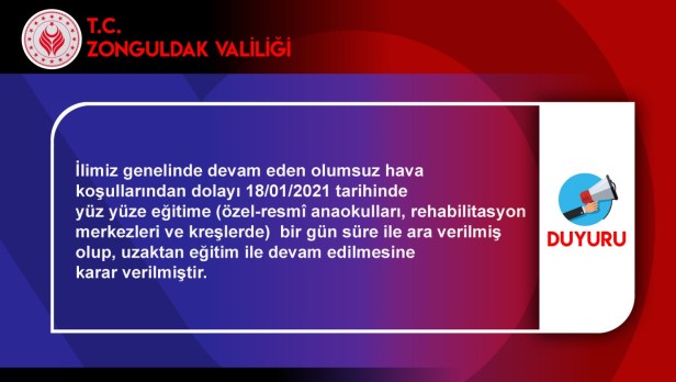 Zonguldak Valiliği yoğun kar yağışı nedeniyle yeni bir duyuru yayınladı.