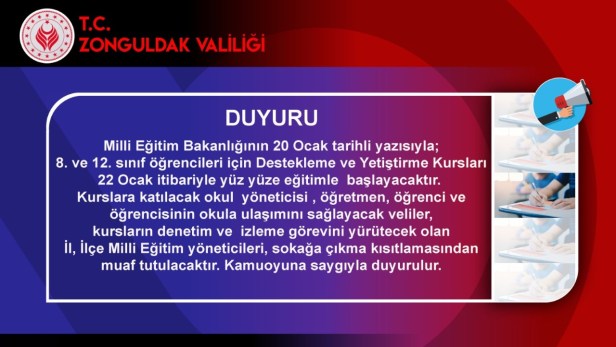 Haber 8 ve 12. Sınıflarda yüz yüze eğitim başlıyor Tarih: 22 Ocak 2021Yazar: susmagazetesi 0 Yorumlar Zonguldak Valili yaptığı duyuru şöyle sitesinden daha fazla şey keşfedin Son gönderilerin e-postanıza gönderilmesi için abone olun. E-postanızı yazın… Abone ol Beğen Yükleniyor... İlgili