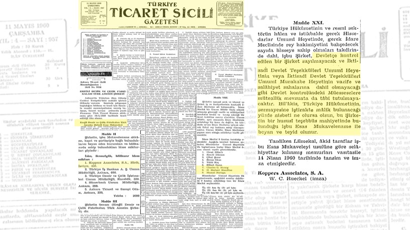 Zonguldak İdare Mahkemesi’nin tüm bu üst mahkeme kararlarına ve 233 sayılı Kamu İktisadi Teşebbüsleri Hakkında Kanun Hükmünde Kararname’nin ekinde açıklanan listede bulunmamasına rağmen ERDEMİR’i kamu kurumu görme gerekçesi ve belediyemizin dava dosyasına sunduğu bu kararlara rağmen hüküm vermesi anlaşılamamıştır. Ayrıca 11 Mayıs 1960 tarihli Resmi Gazete’de yayımlanan Ticaret Sicil Gazetesi’nde Ereğli Demir ve Çelik Fabrikaları T.A.Ş.’nin kurucu ortaklarının 1. sırasında 450 pay ile, yabancı bir firma olan Koppers Associates S.A. Zürih-İsviçre, yer almaktadır. Ayrıca şirketin ilk İdare Meclis üyeleri olan 9 kişiden 3’ü yabancı uyruklu şahıslardan oluşmaktadır.