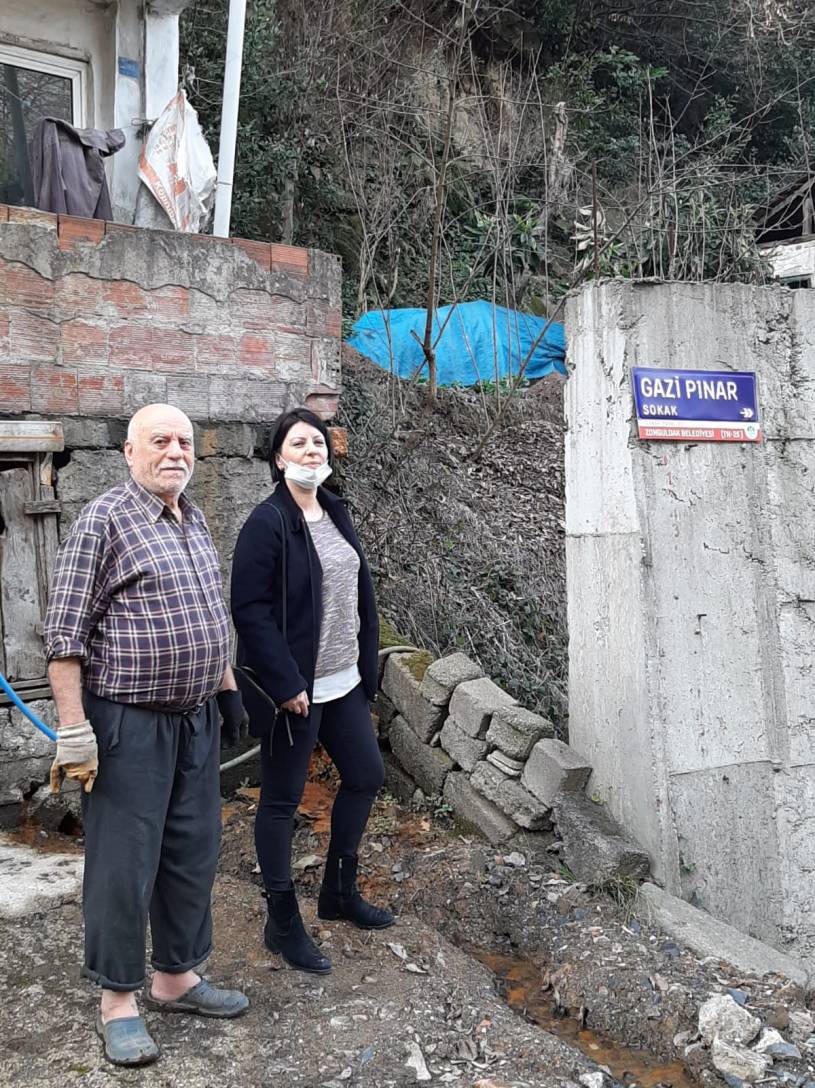 CHP Zonguldak Merkez İlçe Başkanı Ebru Uzun, Yerel Yönetimlerden Sorumlu Oktay Girgin, İlçe Sekreteri Tayfun Özdemir, Terakki Mahallesi Gazi pınar sokakta yaşanan sorunları yerinde incelediler.