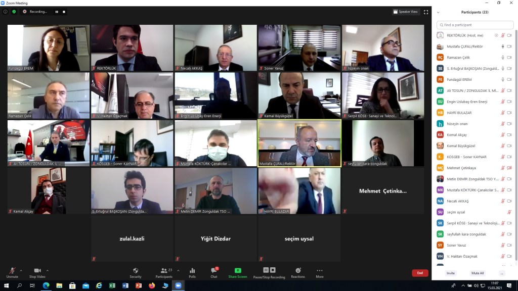 Zonguldak Bülent Ecevit Üniversitesi Kalite Komisyonu yıllık dış paydaş toplantısını bu yıl 15 Mart 2021 tarihinde çevrimiçi olarak gerçekleştirdi. Kalite Komisyonu Başkanı olarak Rektörümüz Prof. Dr. Mustafa Çufalı’nın açılışını yaptığı toplantıya Rektör Yardımcısı Prof. Dr. Kemal Büyükgüzel ve dış paydaş temsilcileri olarak Zonguldak Valiliği, Zonguldak Belediye Başkanlığı, İl Milli Eğitim Müdürlüğü, Sanayi ve Teknoloji İl Müdürlüğü, İl Kültür ve Turizm Müdürlüğü, Batı Karadeniz Kalkınma Ajansı (BAKKA), Küçük ve Orta Ölçekli İşletmeleri Geliştirme ve Destekleme İdaresi Başkanlığı (KOSGEB), Zonguldak Ticaret ve Sanayi Odası, Eren Enerji, Ereğli Demir Çelik Sanayi A.Ş., Çanakçılar Seramik Sanayi ve Ticaret A.Ş., Tat Metal Çelik Sanayi A.Ş. temsilcileri katıldı.