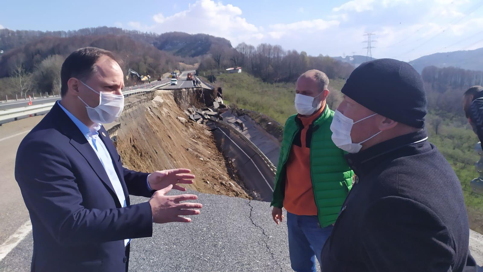 Zonguldak – Düzce karayolu 85 metre çöktü, bölgeye giden Yavuzyılmaz, yolu “Meteor Düşmüşe” benzetti.