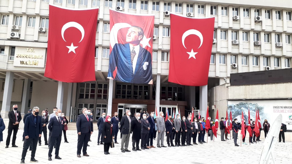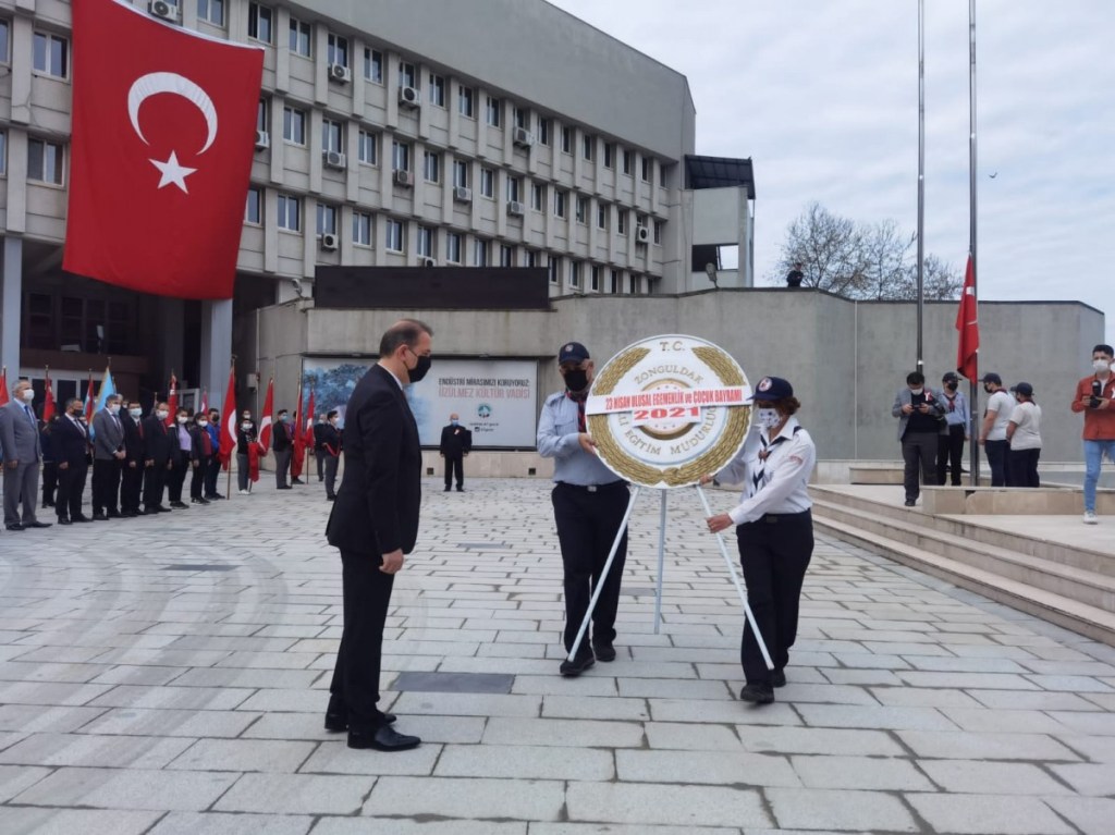 Zonguldak’ta 23 Nisan Ulusal Egemenlik ve Çocuk Bayramı Dolayısıyla Valilik önünde Çelenk töreni düzenlendi Valilik önündeki törene İl Milli Eğitim Müdürlüğü Atatürk Anıtı’na Çelenk bıraktı Saygı duruşunun ve İstiklal Marşı’nın okunmasının ardından İl Milli Eğitim Müdürü Ali Tosun 23 Nisan konuşmasını yaptı Valilik önündeki törene il milli eğitim müdür yardımcıları şube müdürleri öğretmenler ve öğrenciler katıldı.