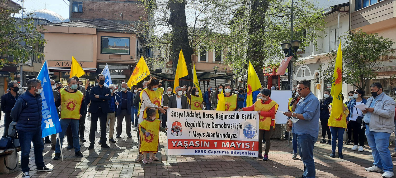 Basın metnini okuyan Eğitim Sen Çaycuma Temsilciliği Yürütme Kurulu Üyesi Orhan Çakmak şunları söyledi: “1 Mayıs Birlik Mücadele ve Dayanışma Günü için yan yanayız. Yasaklara rağmen, baskılara rağmen umudu büyütüyoruz. Her gün 1 Mayıs her yer 1 Mayıs diyoruz.