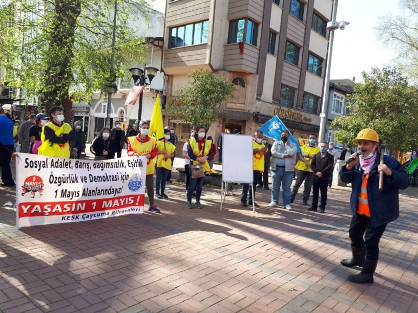 Eğitim Sen Çaycuma Temsilciliği tarafından Çaycuma Cumhuriyet Meydanında pandemi koşullarına dikkat edilerek 1 Mayıs’la ilgili basın açıklaması yapıldı. Basın açıklamasına Eğitim Sen üyelerinin yanı sıra Çaycuma Belediyesi Başkan Vekili Sezai Bilici, Belediye Meclis Üyeleri, CHP Çaycuma İlçe Başkanı Şeref Kötürk, Gelecek Partisi Çaycuma İlçe Başkanı Şenol Cin, CHP Çaycuma Kadın Kolları Başkanı Senem Ağzıküçük, ADD Çaycuma Şube Başkanı Ela Mantarlı Kurt ve vatandaşlar katıldı.