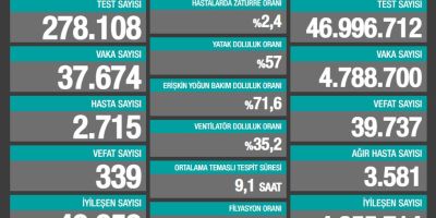 Sağlık Bakanlığı , 339 kişinin de Covid-19 nedeniyle öldüğünü açıkladı